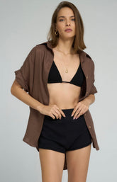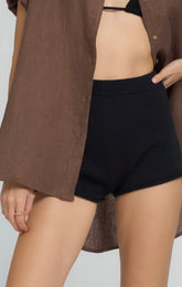 The Aura Short by LILYA is a high-waisted short crafted in soft cotton knit. Featuring a semi-fitted silhouette, comfortable elastic waistband, and classic black colourway, these knit shorts are perfect for lounging, layering, or warm-weather outings.