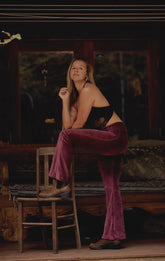 Step into your new favourite ECO pants with these stretch velour flares, made from bamboo and organic cotton! They are the ultimate in comfort and style. Easy to wear and very flattering, you won't want to take them off! And so versatile, wear them out and about, dressed up or down, great for yoga or for just lounging in. Made from bamboo and organic cotton they are so unbelievably soft, breathable and handmade from natural fibres!