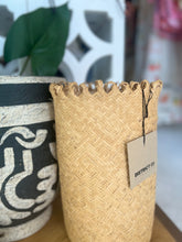 This gorgeous tightly hand woven basket can stand tall or be rolled down for a different look.