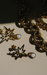 These earrings have been created from my hand drawn 8 point star (8 is the number of Abundance) with a droplet of white opal signifying the beauty that comes from light refracting off water.