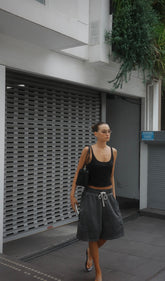 Relaxed, effortless, and designed to move with you. These longer-line lounge shorts feature a raw distressed hem, adjustable drawstring waist, and side pockets for everyday wearability.