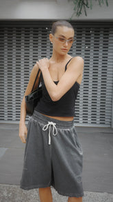 Unisex Distressed Lounge Shorts – Acid Wash Charcoal