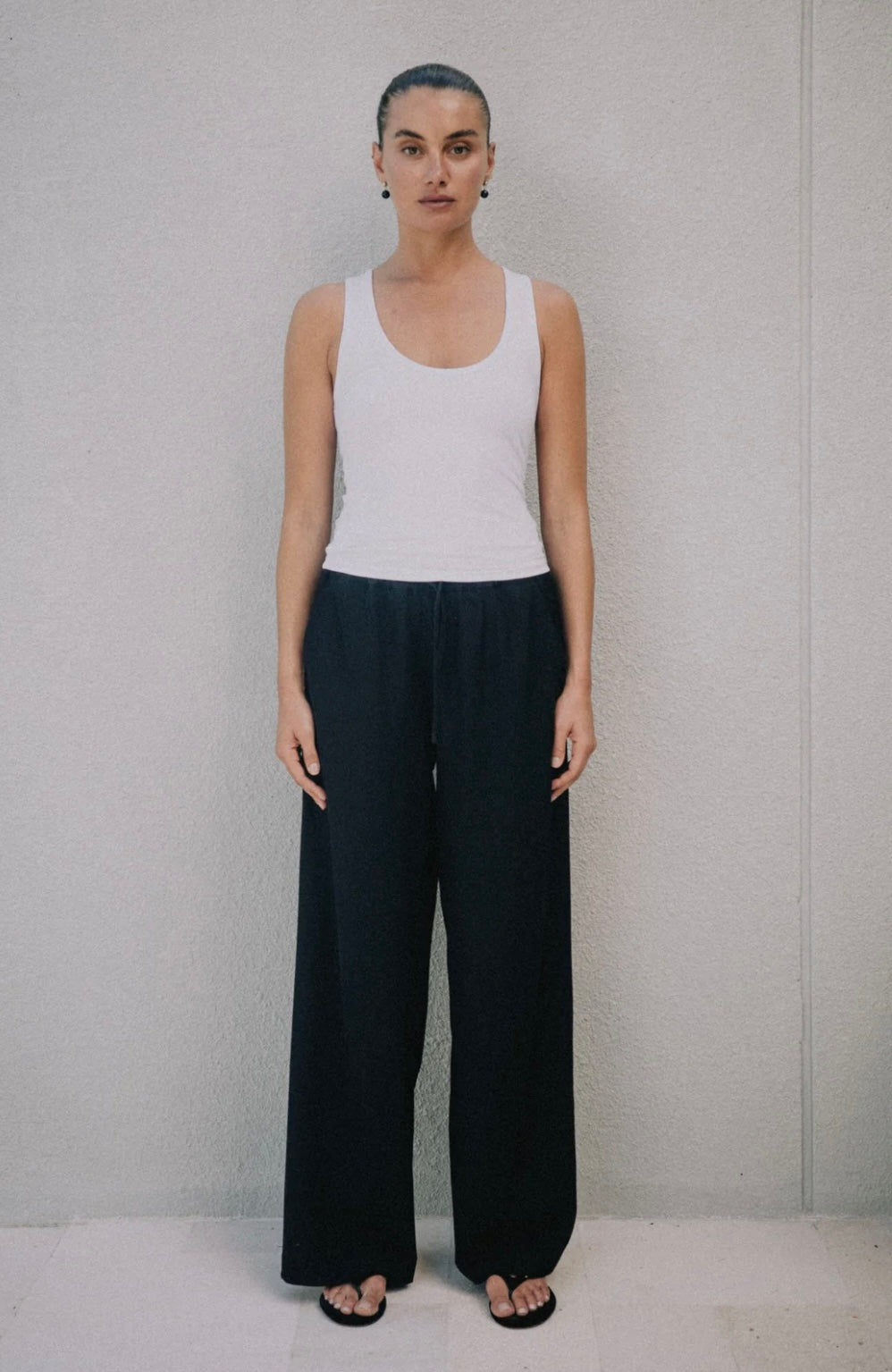 The Mia ribbed tank in white is the basic essential, made from a super soft viscose stretch rib fabric. Designed to be the ultimate staple in your wardrobe, the Mia is available in two minamalist colours and can easily be paired back with your existing pieces. Features a scoop neckline, perfect for layering.