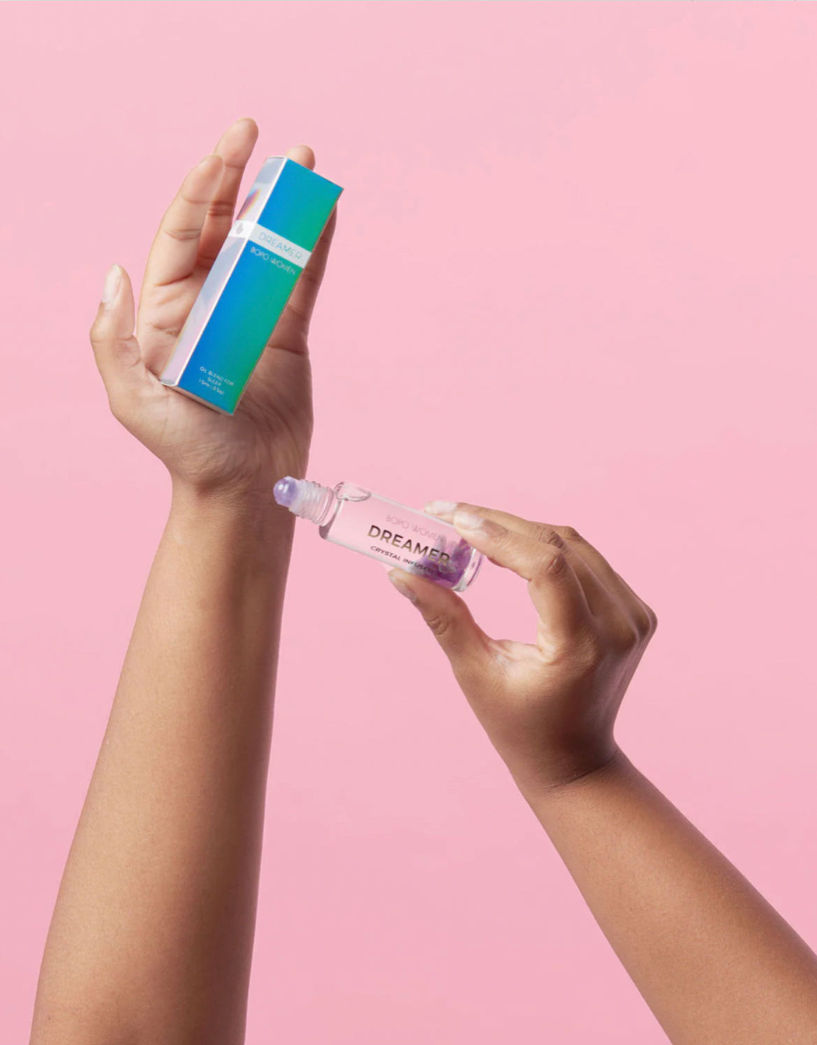 A crystal infused essential oil blend to calm the mind, relax the body and support peaceful sleep. A dreamy mix combining lemon, juniper berry and lavender essential oils. Perfect as a light natural perfume alternative. Features a Dream Amethyst rollerball.